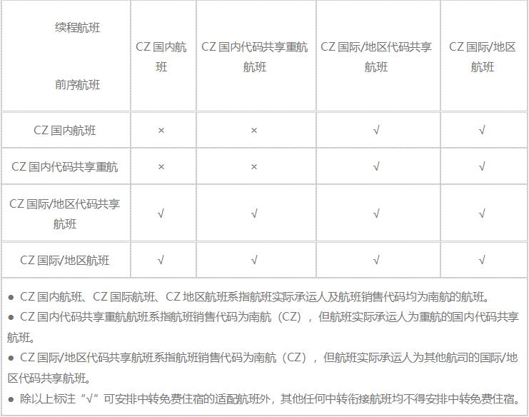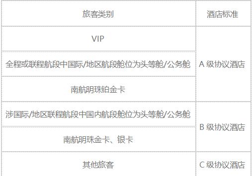 仅限已订妥座位并搭乘南航国际、地区航班(含代码共享,不含地面虚拟航班),经中转站进行国内-国际/地区互转及国际/地区转国际/地区,航班衔接时间在6小时(含)至30小时(含)之间且符合相应旅客类别舱位适用条件的中转联程旅客适用本标准(含重庆航空有限责任公司国内代码共享与南航国际、地区互转的联程航班),旅客类别及具体适用舱位标准: