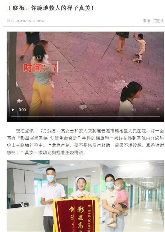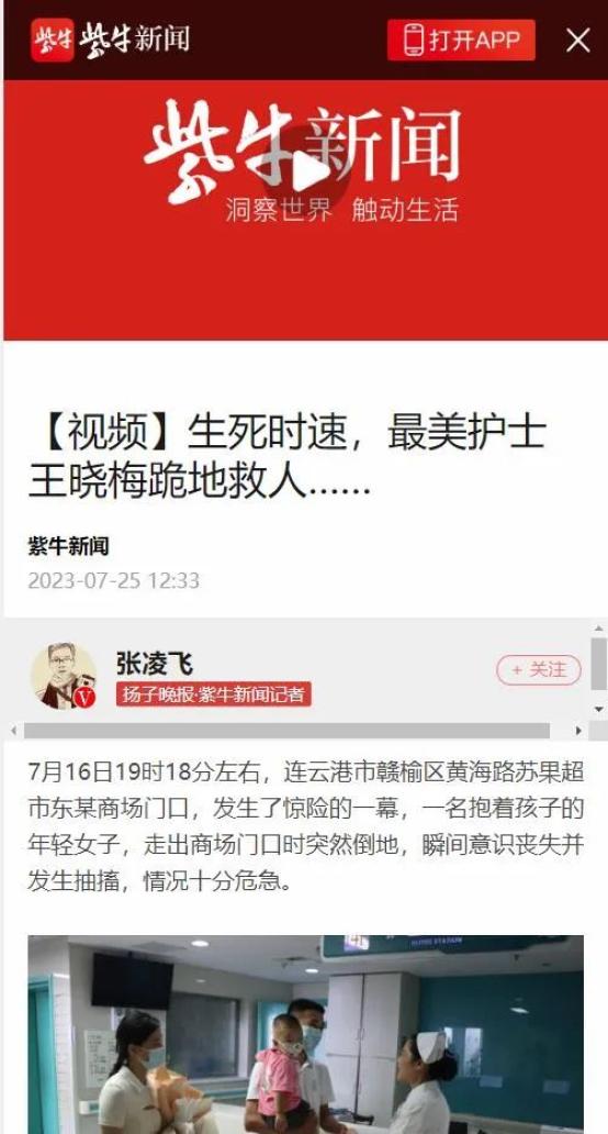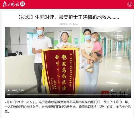 扬子晚报《 生死时速,最美护士王晓梅跪地救人……》