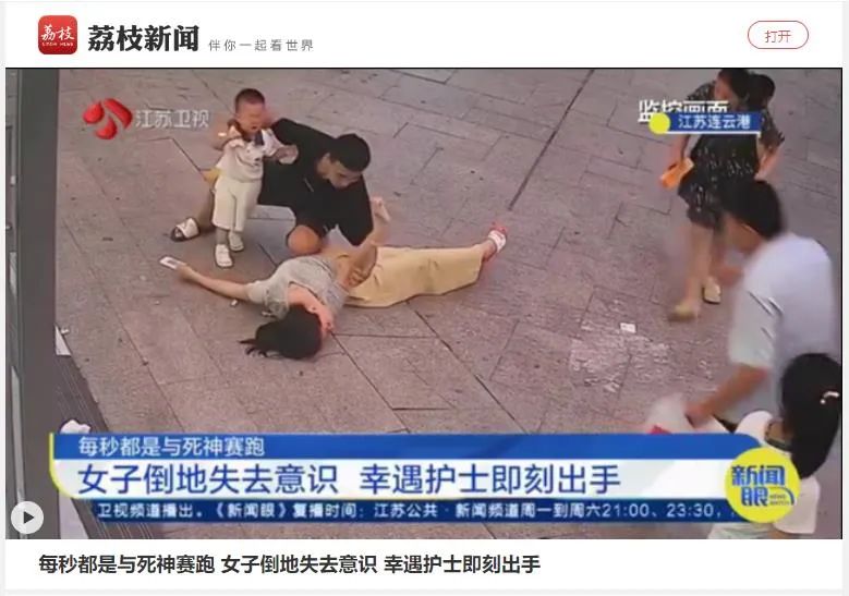 荔枝新闻《女子街头跌倒抽搐 下班护士跪地救人》