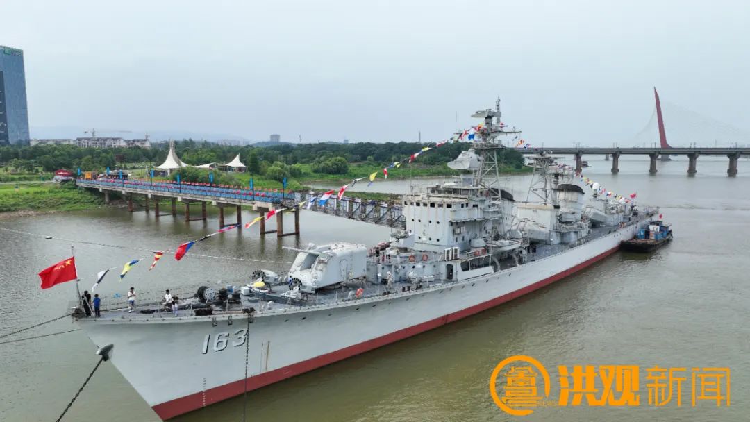 赣江畔,赣江大桥不远处,停靠着退役的163南昌舰。它在2016年被移交给南昌市,回到了“军旗升起的地方”。南昌舰主题园已成为南昌热门的军事主题景点之一。
