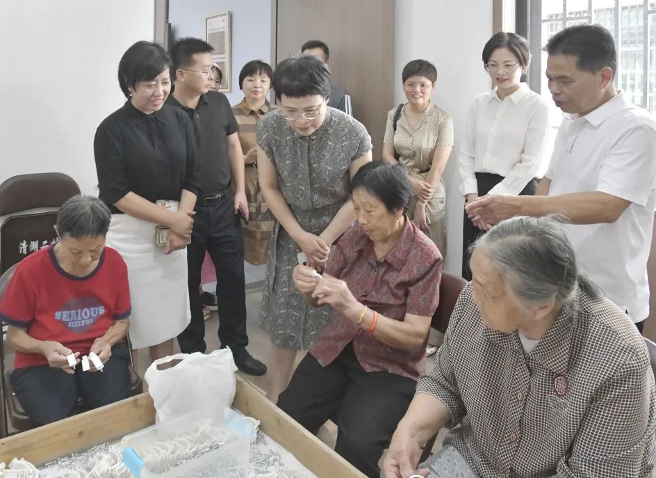 沈素芹一行首站来到清湖古镇,现场考察了美丽庭院、妇女儿童服务驿站、共富工坊等工作,肯定了该地以满足妇女儿童需求为导向,用心用情打造妇女儿童服务驿站,以驿站为载体,在服务好“一老一小”的同时,引导广大妇女发挥在家庭中的独特作用,带动家庭自主参与到美丽庭院建设中,实现各美其美,美美与共。