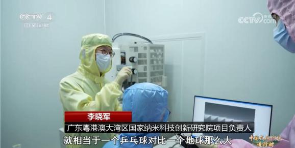 广东粤港澳大湾区国家纳米科技创新研究院项目负责人 李晓军:如果一个纳米球(的大小)对比一个乒乓球,就相当于一个乒乓球对比一个地球那么大。