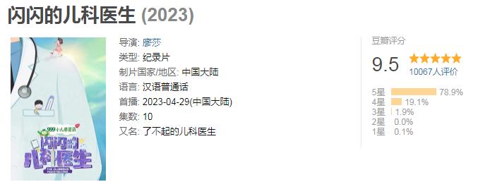 纪录片《闪闪的儿科医生》完结了,共10集,讲述了40多个发生在儿科病房的故事。豆瓣上万人打出了9.5的逆天高分,这在国产纪录片中实属罕见。