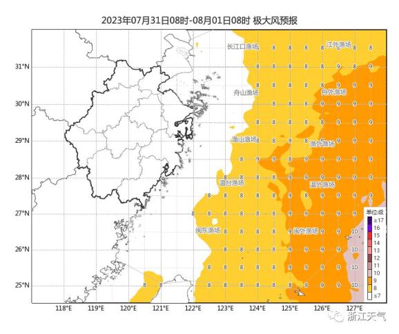 受“卡努”影响,今天东海东部海域风力逐渐增大到阵风8-10级,明天东海东部海域继续增强至10-12级,东海西部海域逐渐增强至8-9级,后天东海东部海域12-14级,台风中心经过的附近海域阵风15-17级,东海西部海域10-12级,浙江中南部沿海海面明天起逐渐增强至8-9级阵风。