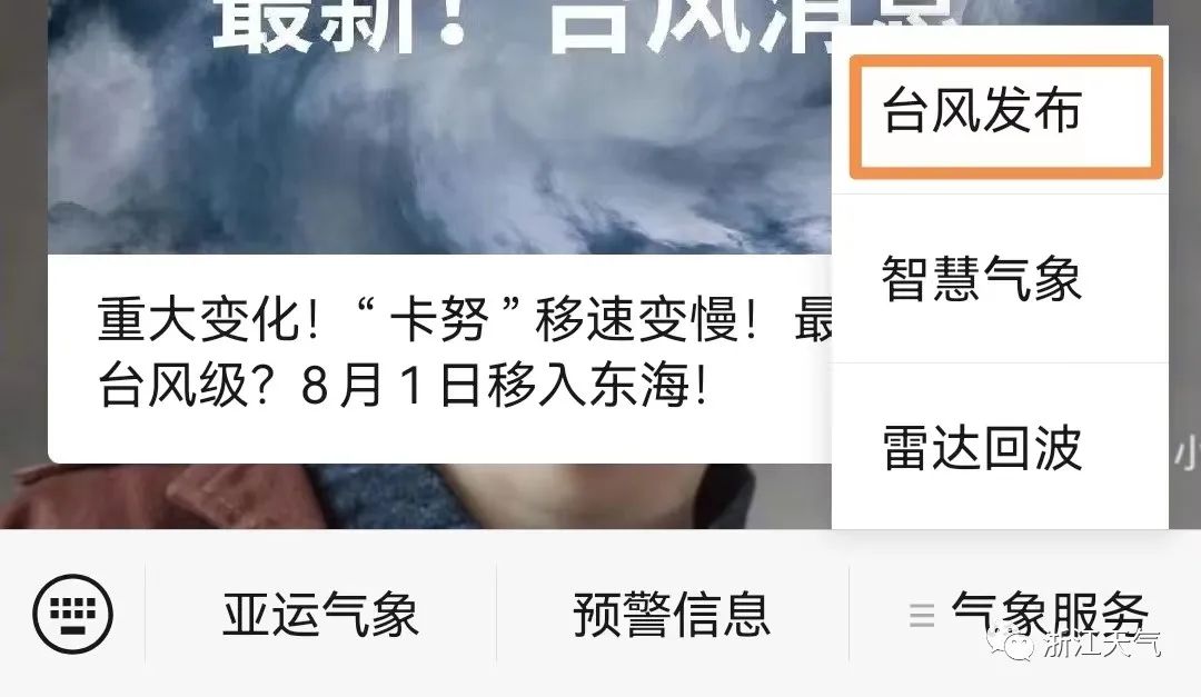 点击浙江天气公众号菜单栏右下角“气象服务——台风发布”即可查询最新台风动态原标题:《“卡努”路径大调整!来看专家解读台风或将转向原因!》