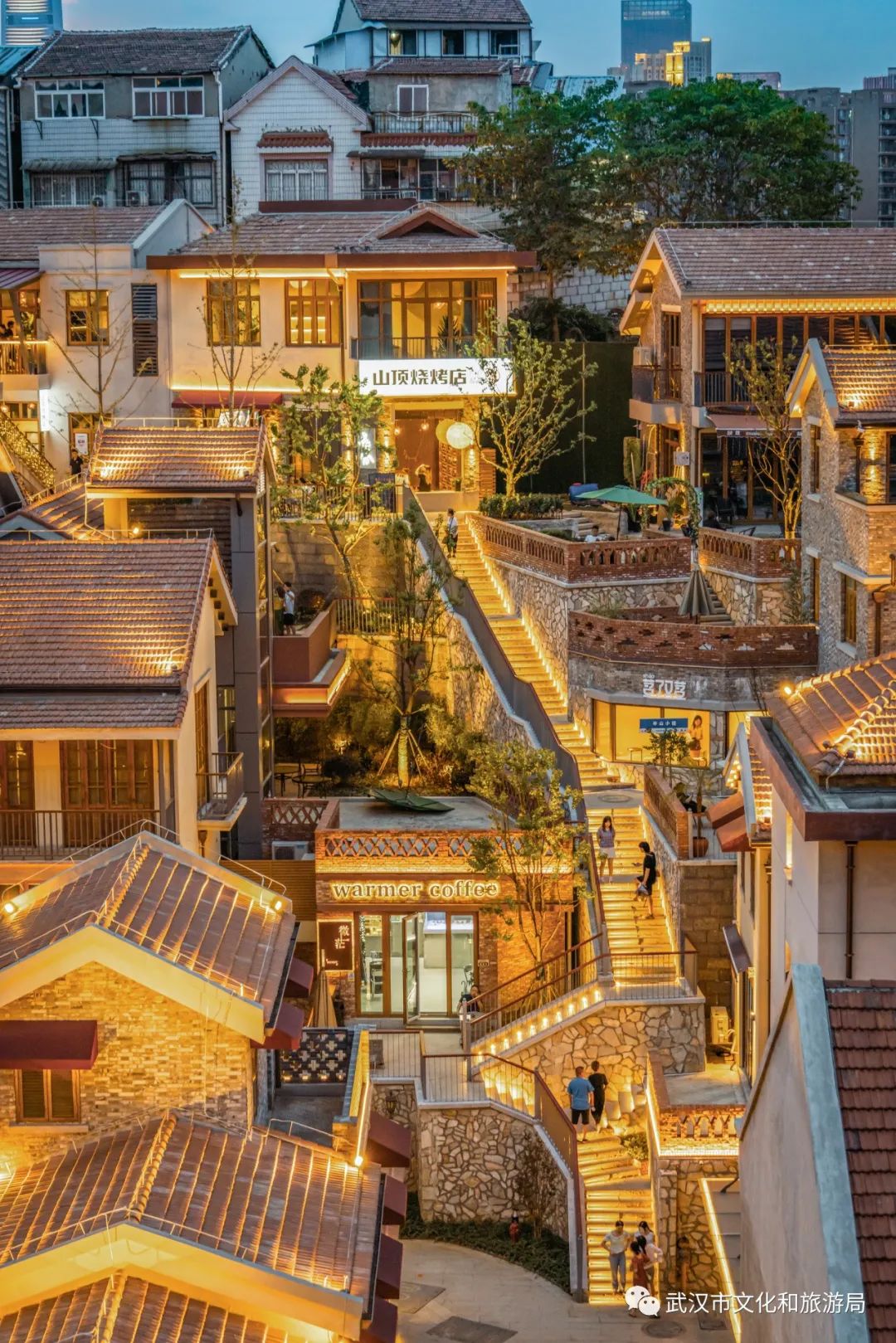 行,「武汉城市漫游计划」更新了:今天walk到了武昌古城,一路从蓝调夕阳,追到了山上的昙华林。