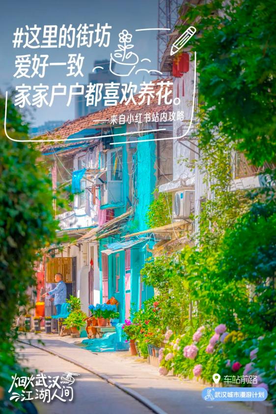 △车站前路在老汉阳火车站附近,约200米,一条废弃铁轨贯穿,爱养花种草的街坊们把它打造成了一条花街,干净漂亮,走走逛逛心情会变好。(车站前路攻略点我查看)