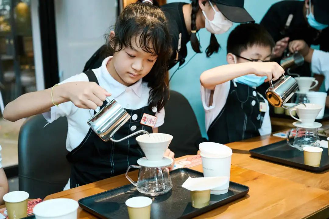 “小小店长”们穿上工作服,深度探秘朵云书院·戏剧店,了解了图书的起源故事,学会了如何科学整理书架等等。C Cafe的咖啡师还为大家分享了咖啡基础知识,教授手冲咖啡的制作方法。完成学习后,“小小店长”们互相交流体验心得,获颁结业证书。