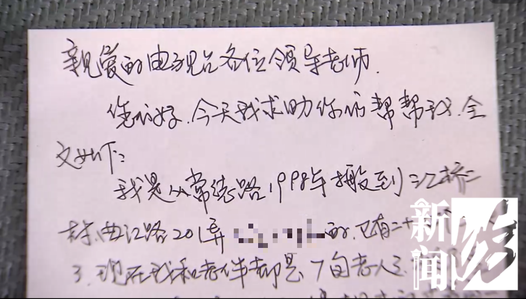 最近,《新闻坊》同心服务平台收到了一位上海市民张阿姨的手写求助信。