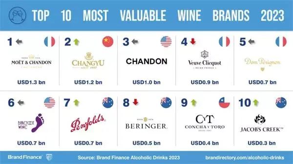 “2023全球最具价值的葡萄酒&香槟品牌”榜单据悉,Brand Finance是目前全球唯一品牌价值评估国际标准ISO 10668、品牌评价标准ISO20671的核心制定者,也是目前全球唯一的独立第三方品牌价值评估与咨询机构。该机构通过评估品牌强度指数、企业预计营业收入等数据最终确定品牌价值,以其专业性和独立性受到国际广泛认可,是评判全球品牌价值的重要依据。