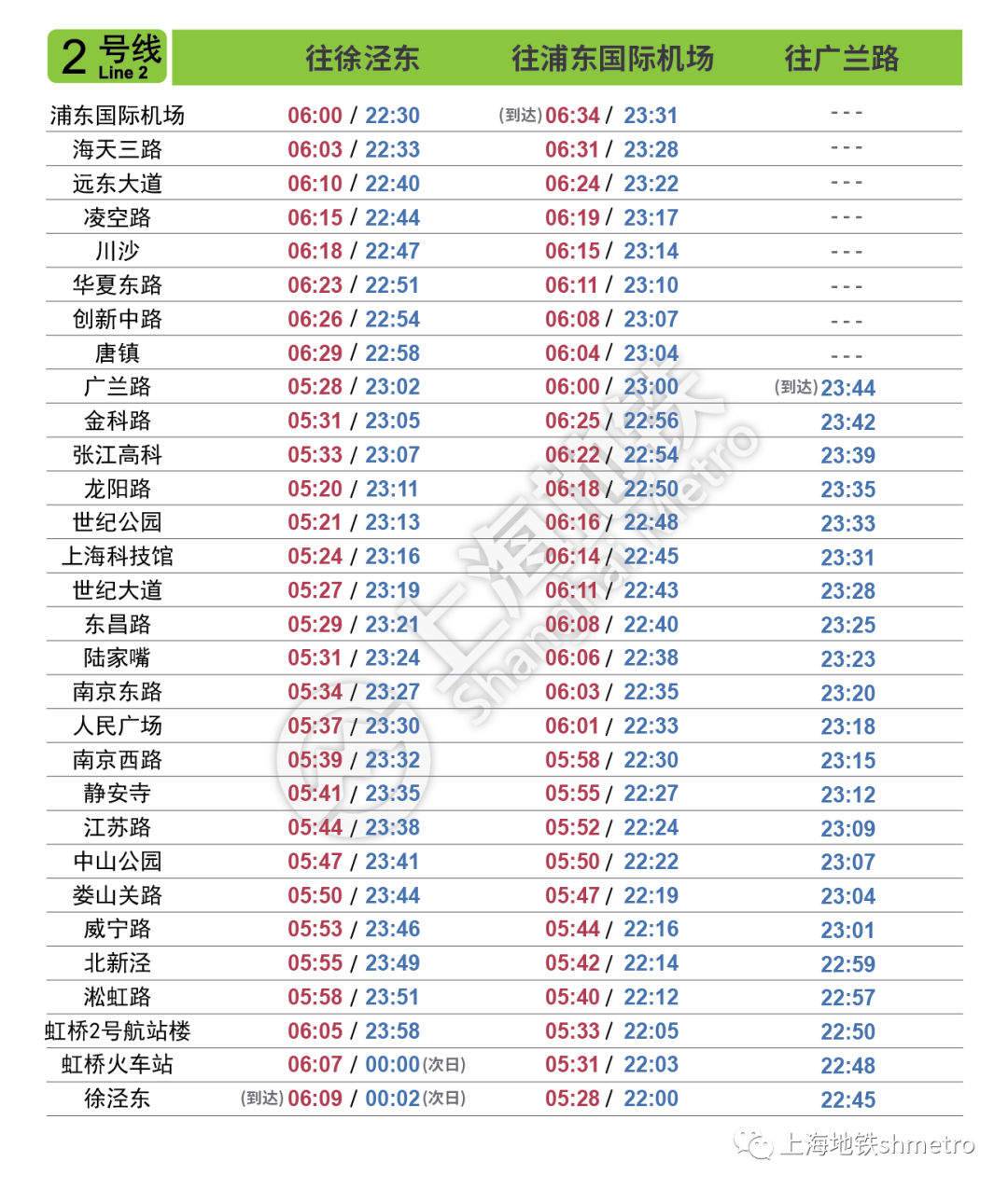 (原标题:今晚起2号线往浦东国际机场末班车延后30分钟,上海地铁最新首末班车时刻表请收好)