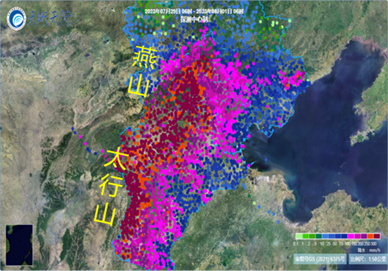沿太行山、燕山山脉前站点出现极端强降水 中国气象局气象探测中心 图