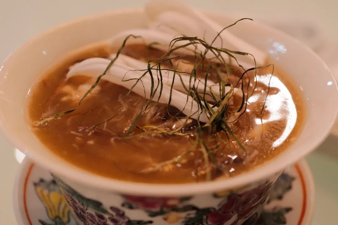 做法也很讲究,诸如鲍鱼、广肚、冬菇、柠檬叶这类配料,都要切成均匀的细丝,对刀工要求很高。