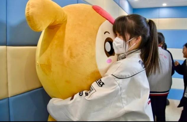 在这里,学生可以通过内设的呐喊机器喊出内心的不满;用力拥抱玩偶会触发安慰的话语;也可以打沙袋出汗发泄……