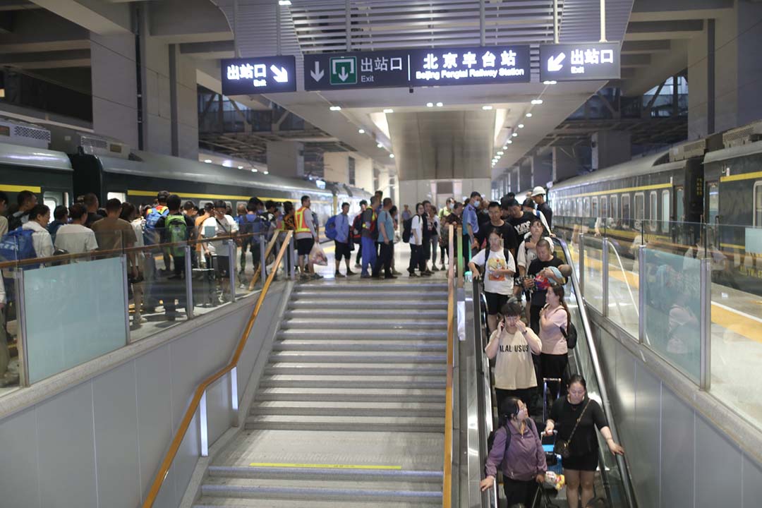 2023年8月2日,K396次列车首批328名被困乘客抵达北京丰台站。风依/澎湃影像 图
