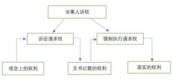 审判与执行中间存在两项关联:一是主体上的关联,即诉讼当事人与法院裁判者和执行者的三方关系;二是程序上的关联,即当事人的起诉立案与法院的审理裁判和强制执行之间的关联。两项关联中存在主体和程序启动的共通性,即审判与执行程序的开启均需依赖于原告(申请人)提出请求权,也即民事诉讼不告不理原则。诉权是民事诉讼活动启动、发展和终结的因素,贯穿于民事诉讼活动的全过程。
