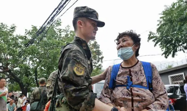 7月31日中午,铁路部门决定将全部旅客转移避险,列车工作人员打开全列车厢车门,组织旅客有序下车,其中7号车厢有一名残疾男性旅客行动不便,车上7名退役军人旅客冒雨轮流将残疾旅客背至居民家中。