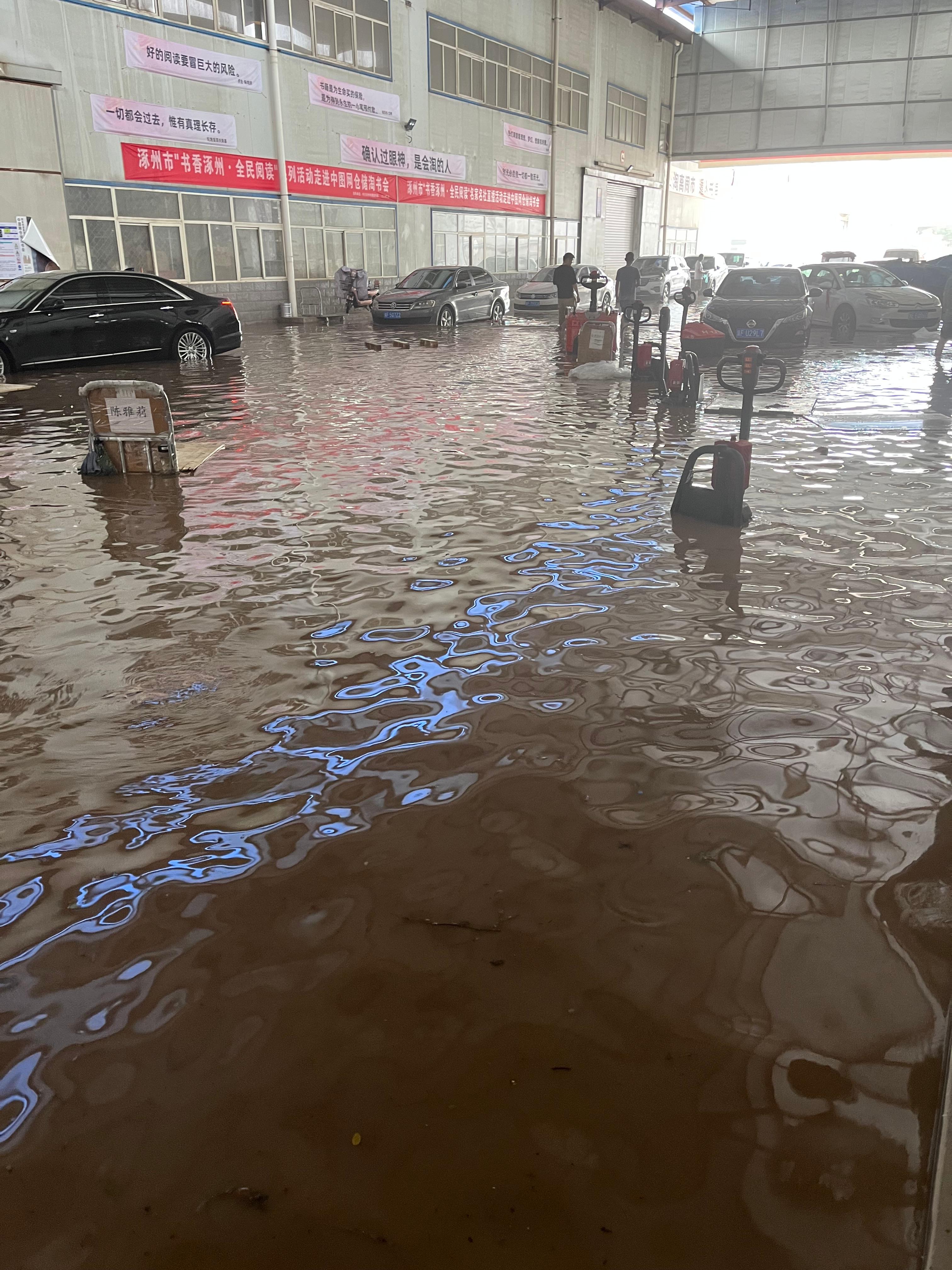 8月1日下午2点半,洪水冲到了中图网涿州园区大门。