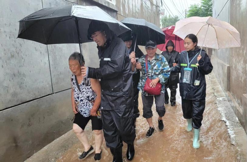 8月1日,十三陵镇党员干部在果庄村带领受灾群众前往安置点,安抚慰问转移人员,全力保障好人民群众的生命财产安全。镇街、村(社区)党组织守牢阵地、奋战一线。各镇街、村(社区)迅速进入应战状态,充分发挥党建引领基层治理体制机制作用,在防汛救灾一线建立临时党组织71个,依托党建工作协调委员会、“双报到”、结对共建等机制组织动员576家辖区单位党组织投身防汛工作,用好分片包干、党员联系户、网格化管理等机制广泛动员党员志愿者、网格员、新就业群体多方力量开展河道巡逻、积水点排查、汛情宣传引导、群众服务保障等工作。流村镇组建3个防汛分指挥部、31支镇村抢险队伍,全面摸排75个突发性地质灾害隐患点,积极协调区发展改革委等共建单位提供防汛物资。十三陵镇执行“1小时一报”工作制度,900余名干部全天24小时扑在一线,开展“敲门行动”对地质灾害户挨家挨户提示提醒、组织转移,并依托党建工作协调委员会等机制对接辖区酒店转移群众189人。百善镇启动“善德善邻议事会”,聚焦雨水内涝等群众集中诉求,组织相关小区内4个村的党支部、村委会、物业公司等管理服务方现场会商拍板,第一时间协调打通排水渠,消除积水倒灌地下车库风险隐患。