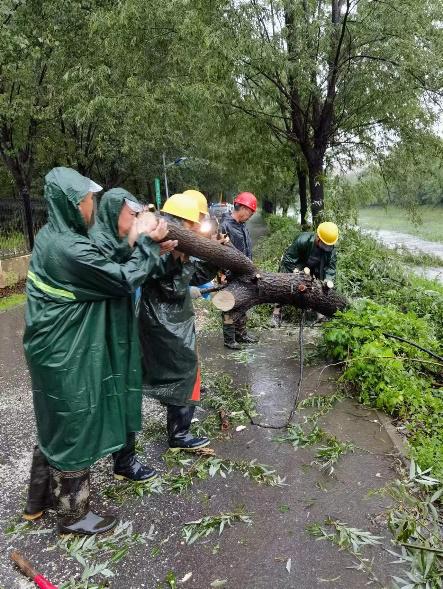 7月30日,区园林局党员干部在行车时发现东小口沟南侧柳树倾倒,及时组织周边公园应急队伍进行清理,恢复道路通行。(推荐单位:北京市昌平区委组织部,图片由推荐单位提供)