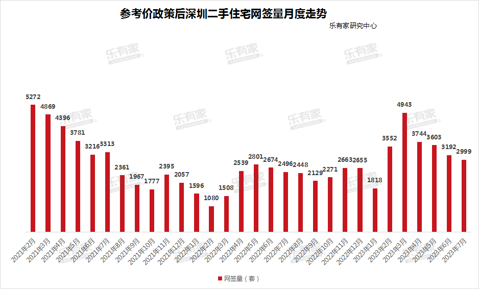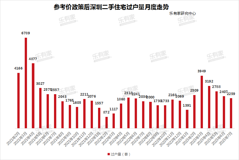 8月2日,据乐有家研究中心监测数据,7月深圳二手住宅过户成交2259套住宅,环比下跌6%。自4月以来深圳二手住宅月度成交从高峰期的近4000套回落到如今的接近2000套。