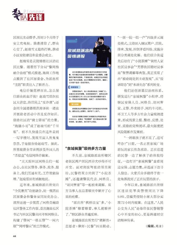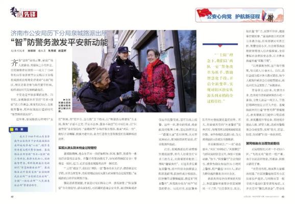 7月28日,《人民公安》杂志以《济南市公安局历下分局泉城路派出所:“智”防警务激发平安新动能》为题,刊登历下公安分局泉城路派出所以科技赋能,打造数智警务,维护辖区平安的先进工作经验。
