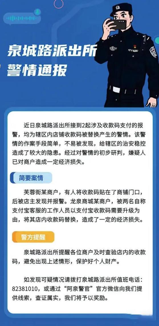 此前,泉城路派出所陆续接到数起报警,称有人打着支付宝员工的名义,对商铺原有收款二维码“偷梁换柱”。对这类多发重复类警情,派出所综合指挥室立即跟进研判,很快形成分析报告,同步制作成警情通报,推送至“阿泉警官”,转发到分类为“商户”标签的群众。与此同时,社区警务队有针对性地强化走访宣传。不久,有商铺店员向“阿泉警官”发来照片,称两男两女刚到商铺实施诈骗。案件办理队迅速行动,当天就将团伙4名成员全部抓获。