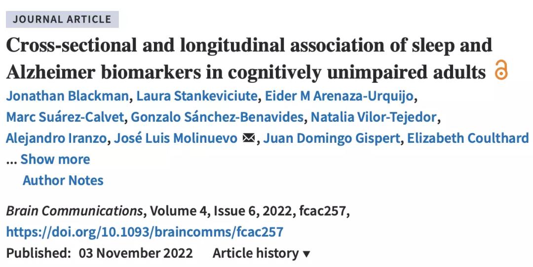 https://doi.org/10.1038/s43587-022-00210-2无独有偶。Brain Communications上的研究纳入了分析睡眠质量/效率的迄今为止最大队列——欧洲预防阿尔茨海默性痴呆症纵向队列研究(EDPA-LAC)后发现:在没有认知障碍的人群中,睡眠时间不足7h与阿尔茨海默症病理学负担的增加有关。