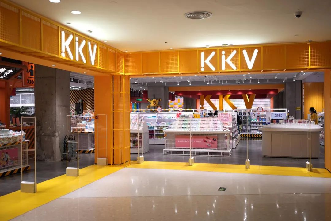 “没有人能空手走出KKV”,凭其饱和度极高的“糖果色”风格,集装箱式的空间布局,贴合年轻人潮流审美的SKU,KKV曾被称为是“现实版的解忧杂货铺”。在这个几百平方米的空间中,涵盖了美妆、潮玩、食品饮品等数千种产品,并且门店不配备导购促销,只有几名员工维持日常运营。