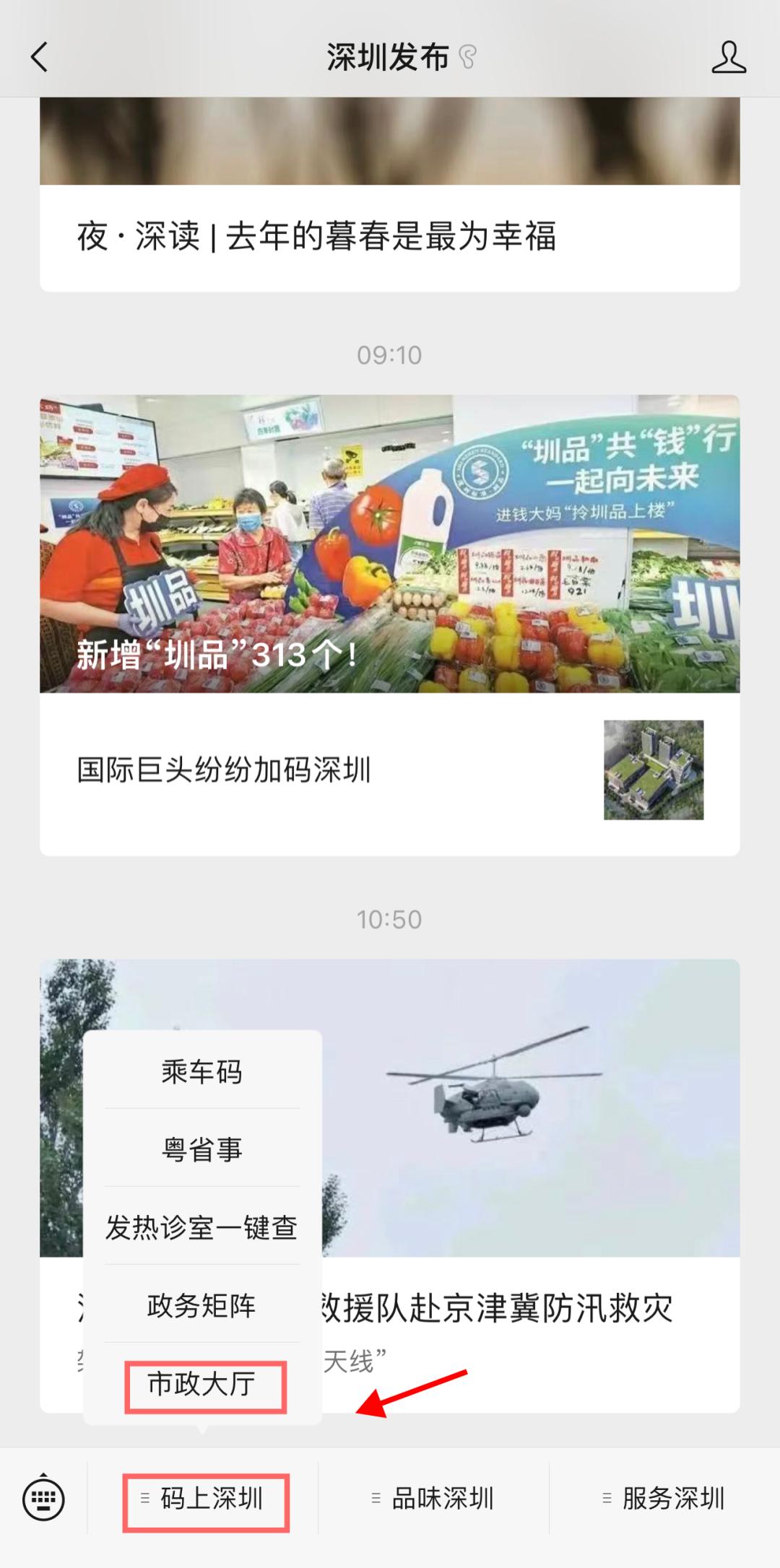 进入“深圳发布”微信公众号