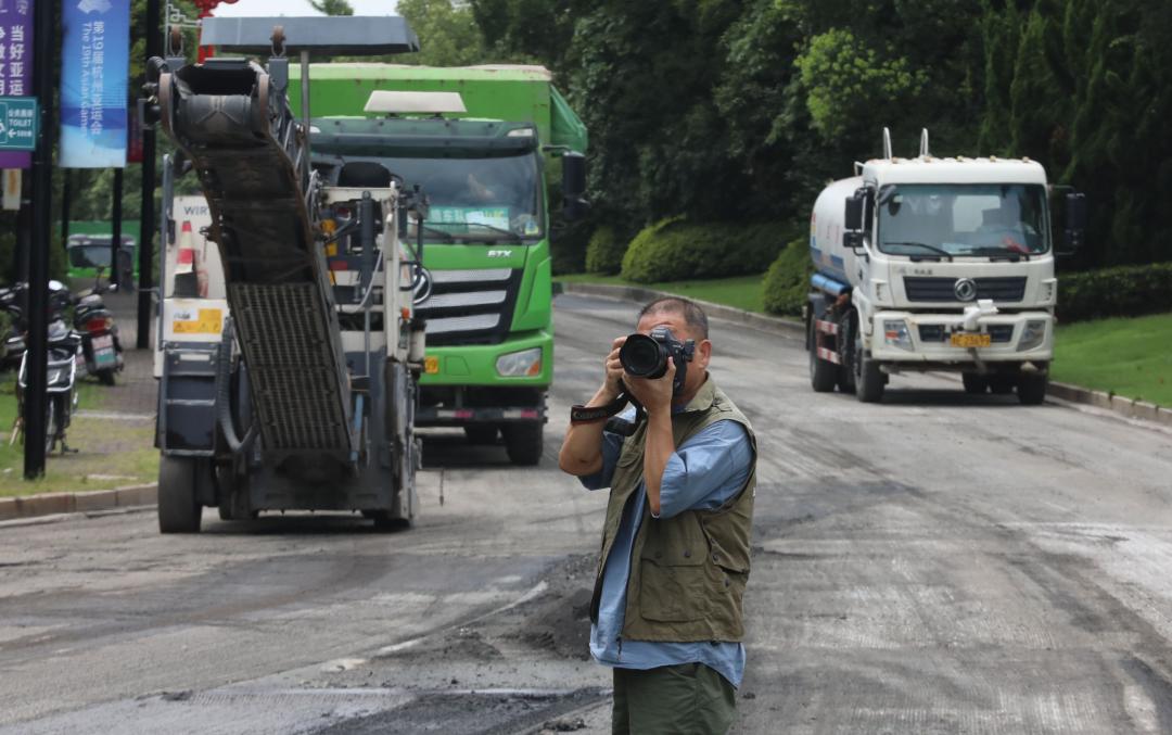 张锦国在拍摄公路建设张锦国,1980年12月参加工作的时候,老家善琏到湖城还没有通公路,他是坐着客轮赶到嘉兴地区公路总段报到,一路上他用了4个多小时。