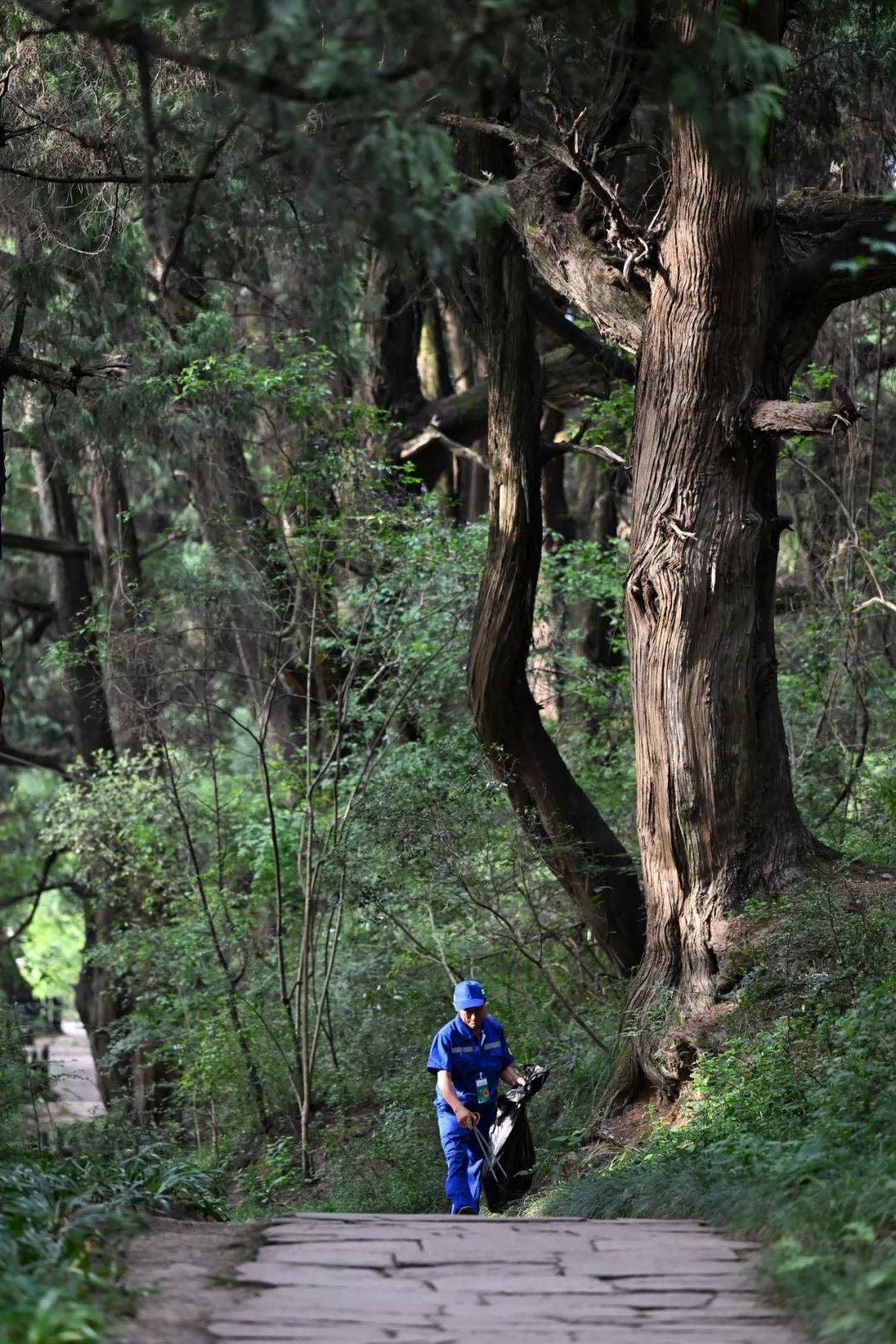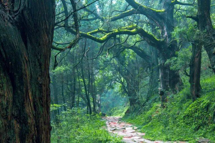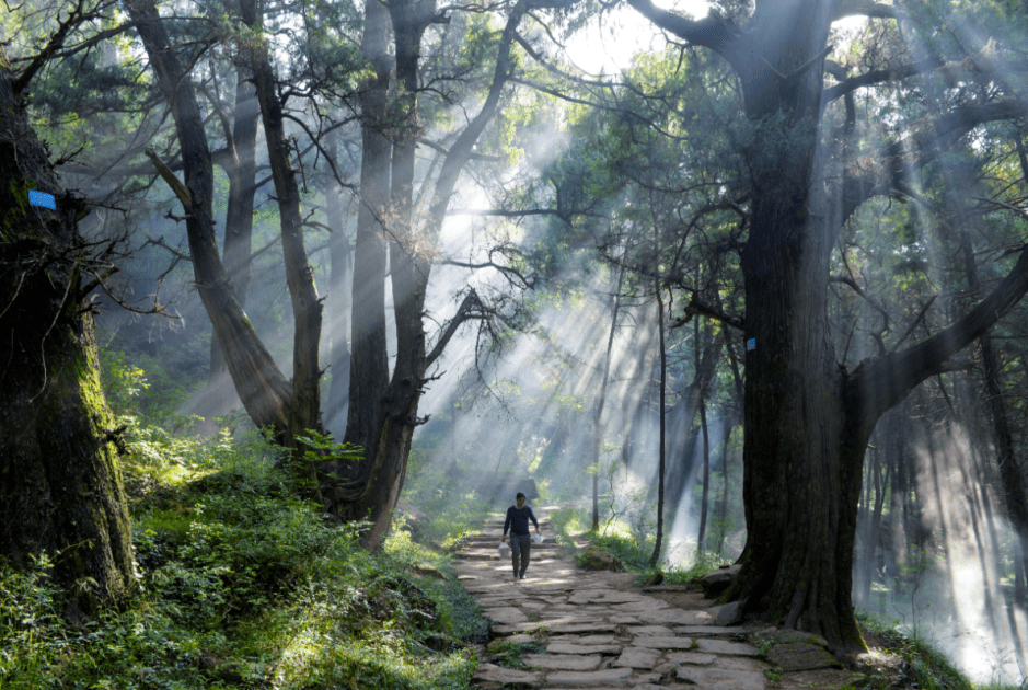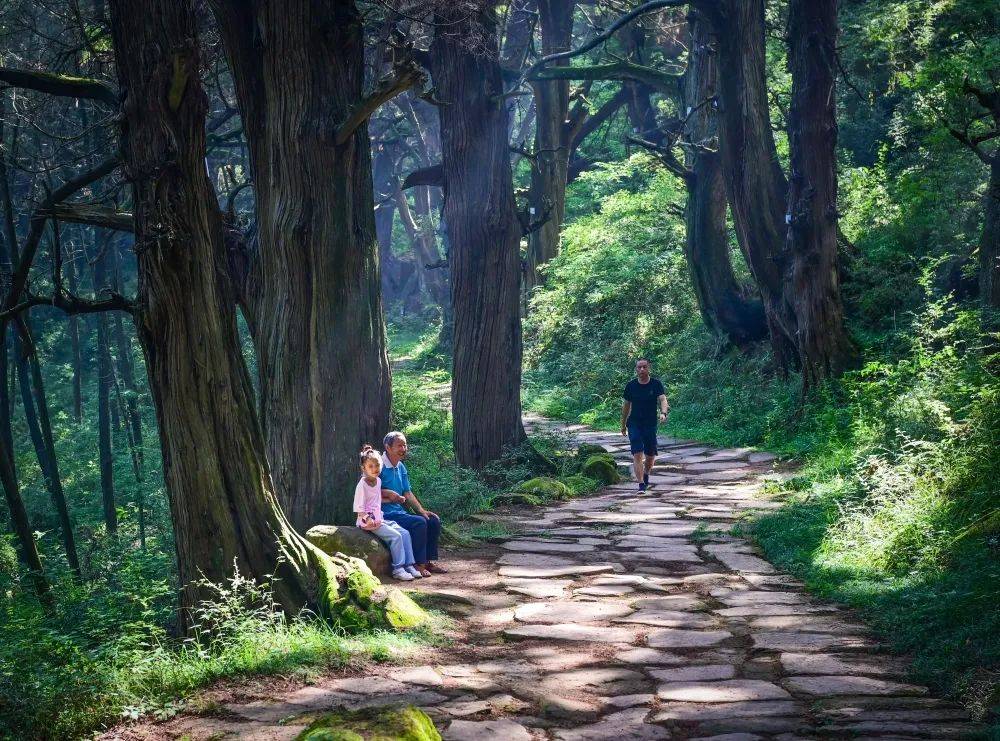 郁郁葱葱的古柏树营造出“绿野仙踪”般的治愈景色,阳光通过树缝,洒在古老的青石板路上,阳光、蝉鸣,还有清爽的古柏林,构成了美好的夏日时光。