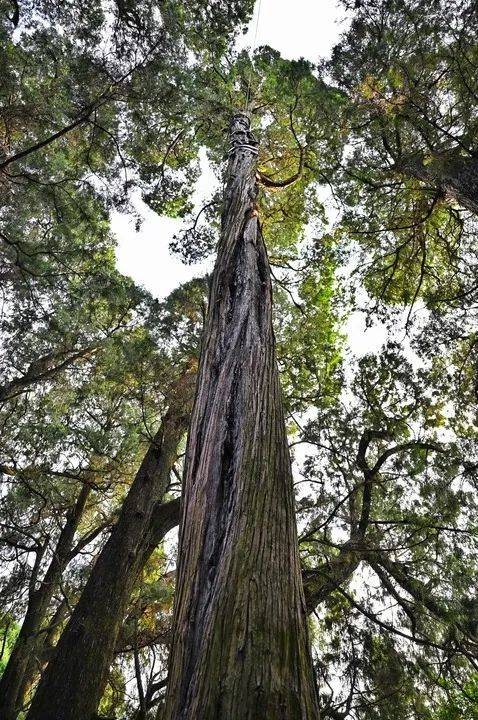 剑阁柏,树龄已有2300多年,树高27米,笔直挺拔、直指云霄。此柏干如松,皮如柏,果实如松,裂纹如柏,全世界仅此一株。