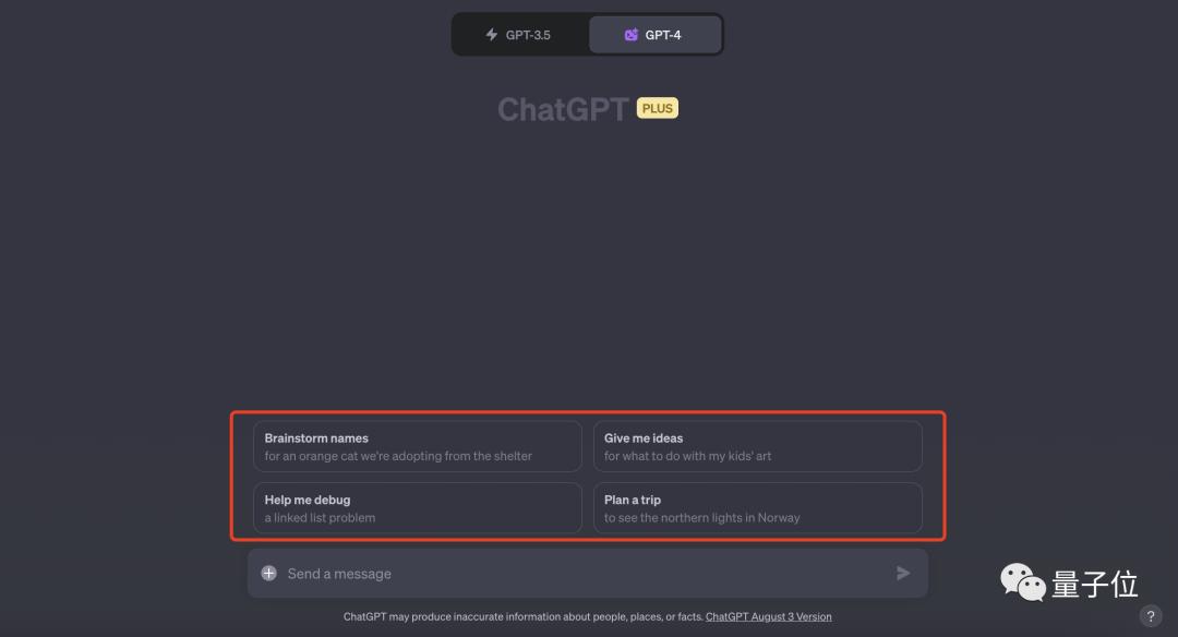 Plus用户打开页面默认使用GPT-4,不必再进行一次切换操作。