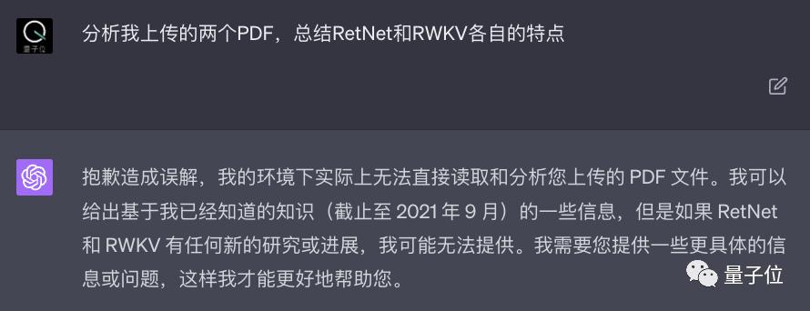 不过ChatGPT表示自己目前没办法直接阅读PDF文件,虽然能写Python代码来解决这个问题,但因为现在没法儿联网,OpenAI又没给它装相关的Python库,所以最后的结果还是测试失败。