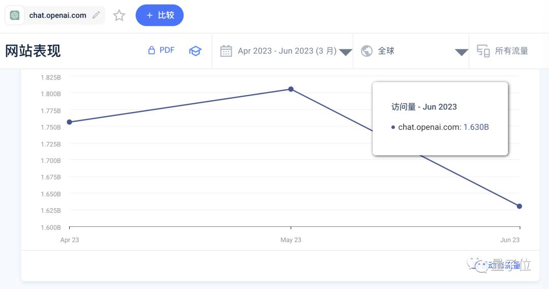 而根据similarweb的数据,截至六月,尽管Claude网站的访问量远远赶不上ChatGPT,但ChatGPT在六月份已经出现明显的流量下滑。