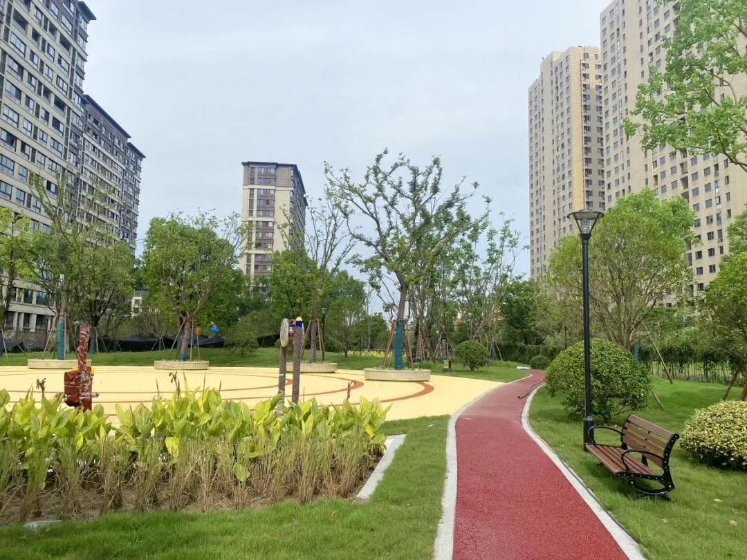 公园里本来就栽有白玉兰、香樟、银杏、桂花、樱花等乔木,如今,又新增了金丝桃、绣球、月季、茶花等花卉。此外,公园新铺设了塑胶跑道,扩建出了篮球场,添置了划船器、椭圆机、智能仰卧板等多种运动器械,滑滑梯、秋千等游乐设施。