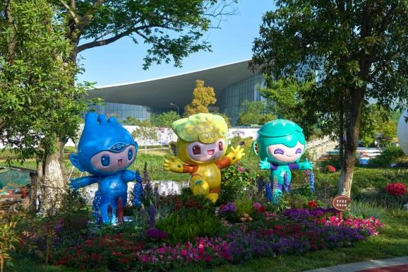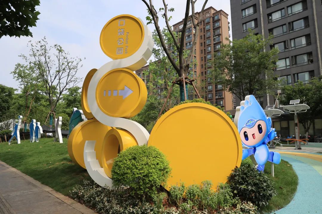 文一路亚运公园总面积约4000平方米,邻近地铁10号线翠柏路站,公园随处可见亚运元素。