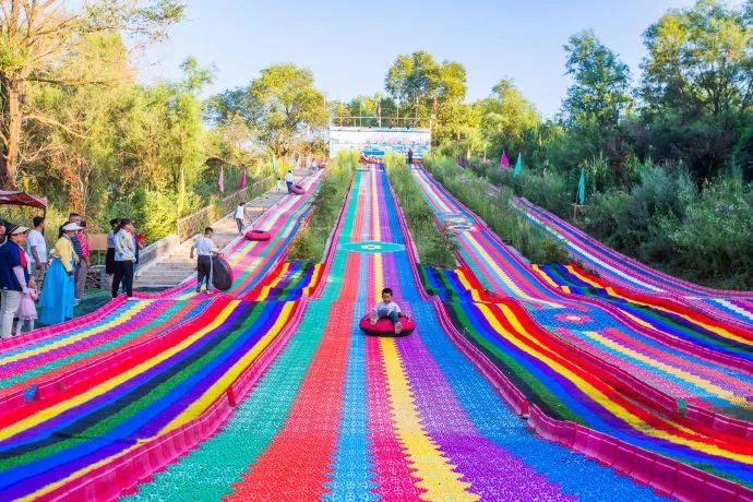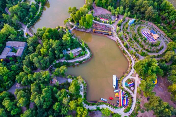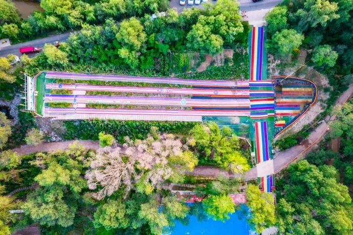 千姿岗绿化面积达80%,目前已建成人工湖9个,修建秦长城文化景观带,观鸟亭18座,在保持原貌的基础上,修建了卡丁车赛道,水上漂流道,还有彩虹滑道、网红桥、网红秋千、丛林小火车、无动力过山车、喊泉等20多个游乐设施,深受游客和孩子们的喜欢。