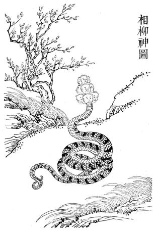 相柳的样貌很奇怪,这里的“奇怪”不是说他的“九首”,而是“蛇身”。