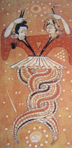在古代中国神话里,“人首蛇(龙)身”这个形象,往往意味着创世大神。最典型的就是伏羲女娲,盘古的形象大概率也是龙(人)首蛇身,此外,雷神和共工也都是这样。