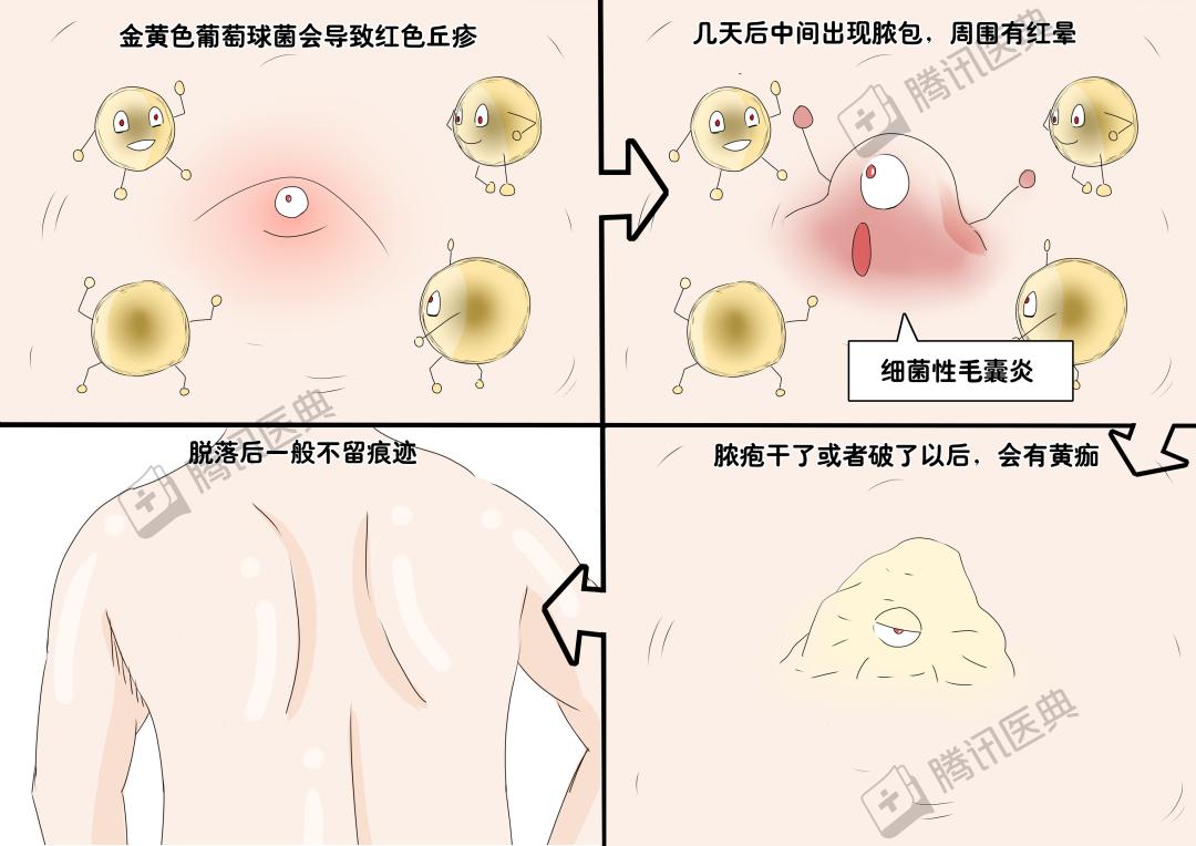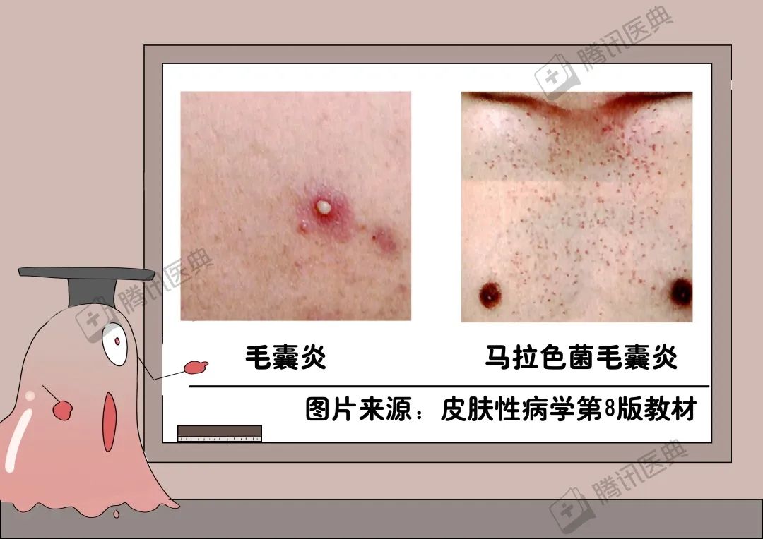 真菌也会导致毛囊炎,主要是糠秕马拉色菌脓包周围有红晕,能挤出粉脂状的东西