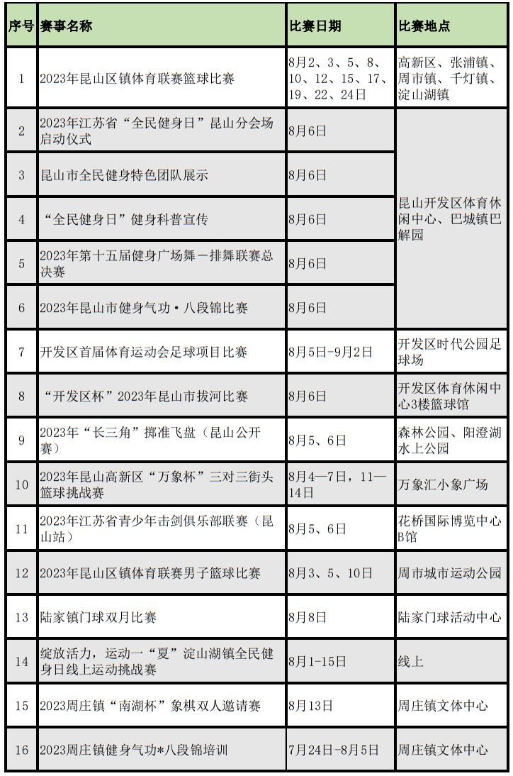 8月8日“全民健身日”当天昆山将有多处体育场所