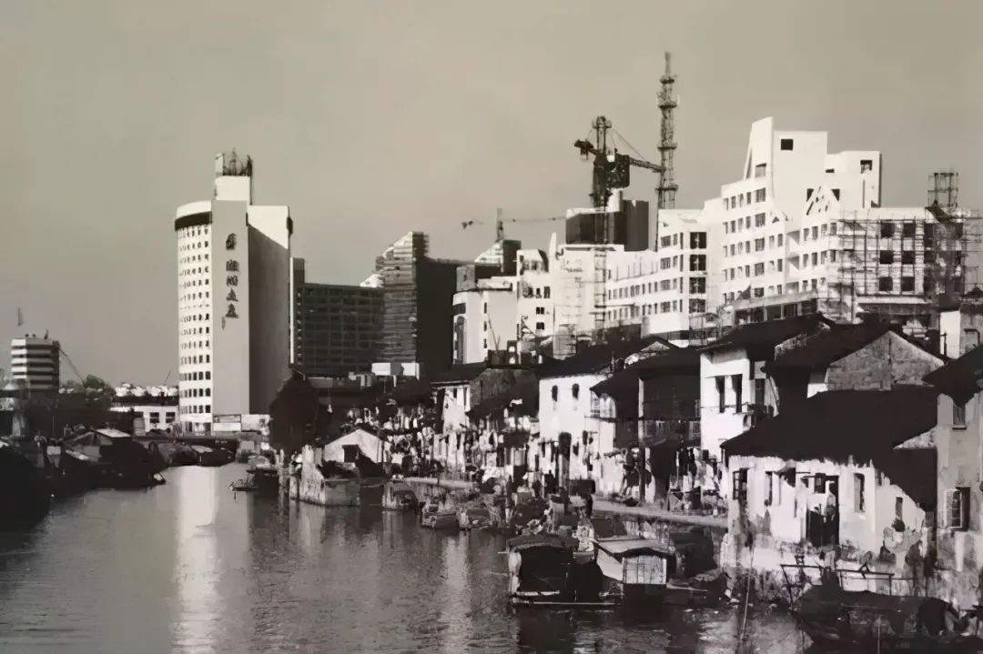 玉皇殿旧影(采自市政协《回望湖州》)人民路的北端通往城北水闸、城北大桥,两桥中间有省疏浚工程处,此处曾是湖城的奉胜门(霸王门),也是湖城上世纪末唯一的一个五叉路口。人民路往南有湖州机床厂、二轻机械厂,路对面是毛纺厂,再往南有通用弄、陈家弄、连家巷、范家弄、后射桥弄、白果树弄,益民路上有永昌丝织厂、人民布厂、湖丰绸厂,过益民路便是湖城的主城区,人民路分上泰和坊、下泰和坊,西居民区有箬帽弄、蓑衣巷、锦余里、雀杆下弄、湖师弄、西河头弄;从大线场、三元洞府、玉皇殿街、紫城巷与宋家巷以北,清同治年间,正是湖州丝绸业兴盛时期,这几条街上有多家绸缎庄,这一带在那年曾叫过绸庄街。周边有浒弄、朱天庙弄、酒仙弄、东港河头、七家弄,还有和乐里,福兴里、椿荫里,天生弄、陆家弄,这一带古巷、古弄密集,纵横交错,路路相连。