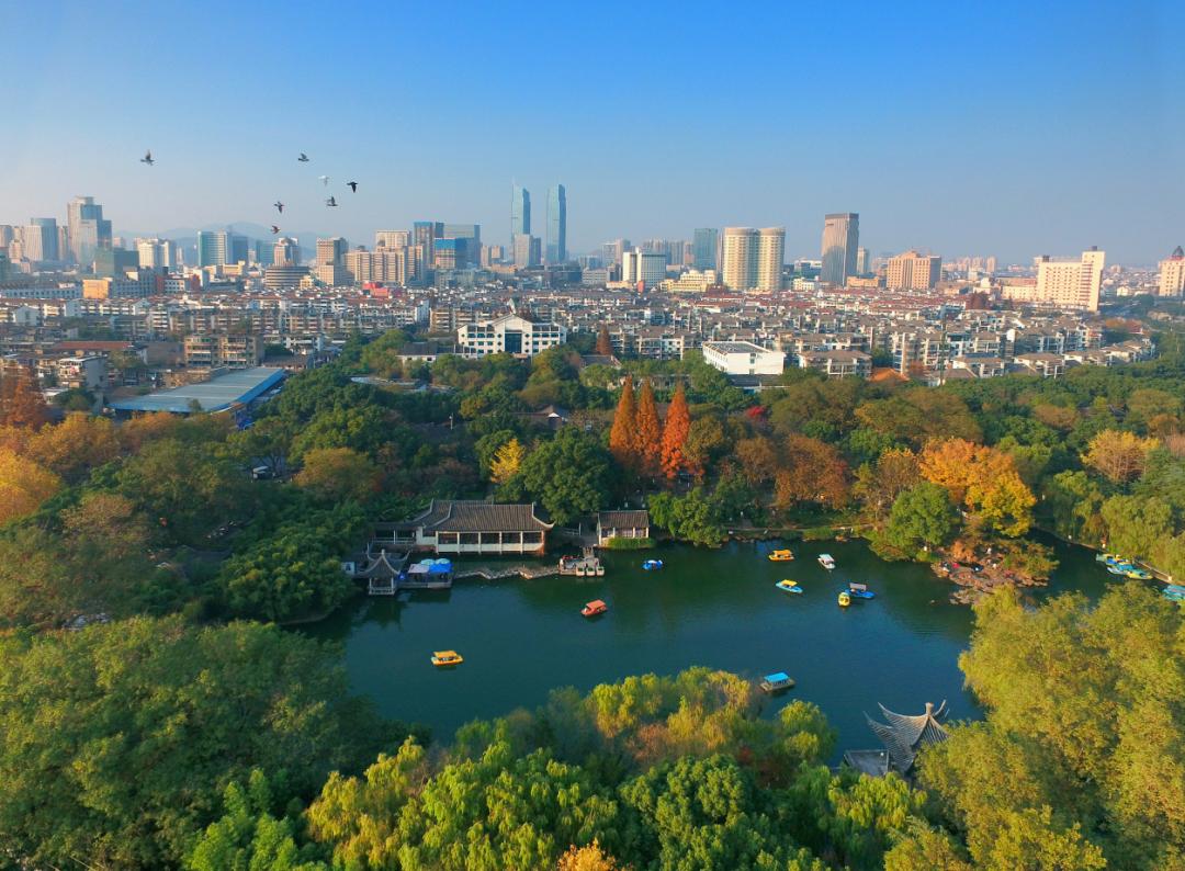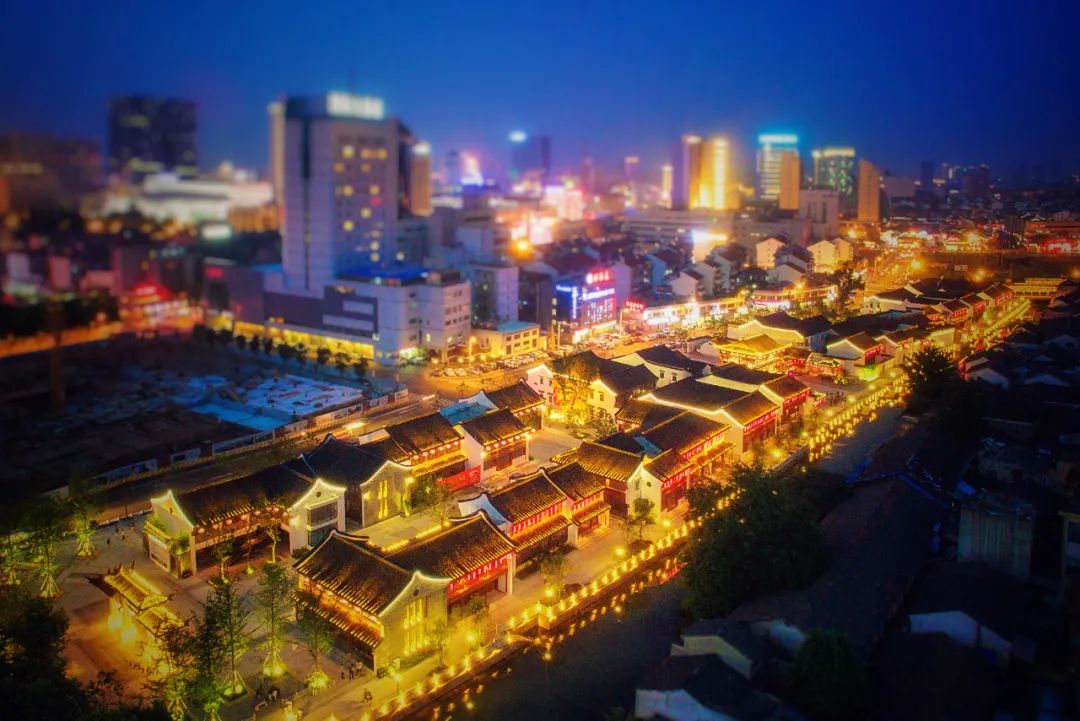 古典莲花庄与现代都市。张剑 摄定安桥西堍,原为湖城的南城门,南城墙下沿河有座驿西桥(1972年拆除),可抵达南门埭廊。南门埭廊也是城外的一个小古镇,小街古巷也不少,有南门直街(常红街)、定安街(大众街)、定安弄、潘家弄、南北河滩、城南路、南华路,面积约0.56平方公里,民国时建有碧浪小学,1954年建有航民子弟学校,2002年率先创办“民工子弟学校”。