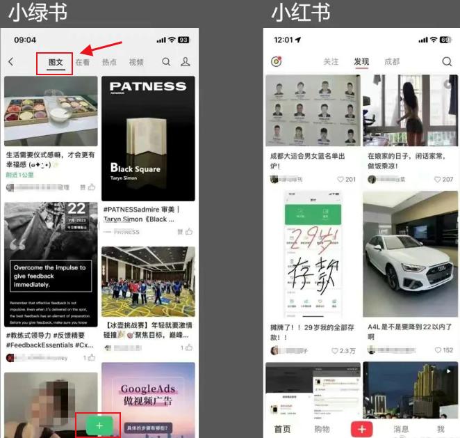 左:微信小绿书,右:小红书紧接着,五个月后的今天,微信再次发起攻势:在“看一看”单拎出一个产品场景,试图再造小红书“平替”——看完上面对比图,相信很多读者会陷入短暂的沉默:这 UI(用户界面)不能说是毫无关系,只能说是一模一样。