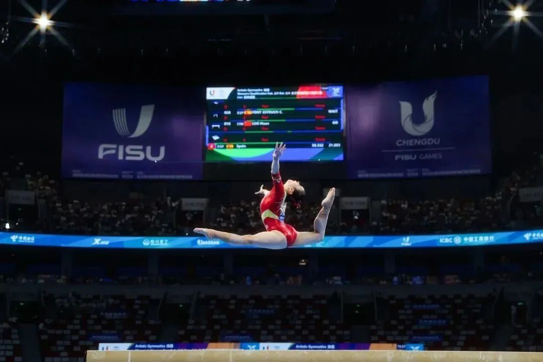 8月3日,经过激烈的争夺,成都大运会体操项目团体决赛及个人资格赛结束。由韦筱圆、欧钰珊、章瑾、杜思雨、罗欢组成的中国大学生女子体操队夺得冠军。其中,我校体育与运动学院2021级本科生杜思雨代表团队出征,参加高低杠、自由体操和跳马三项角逐。
