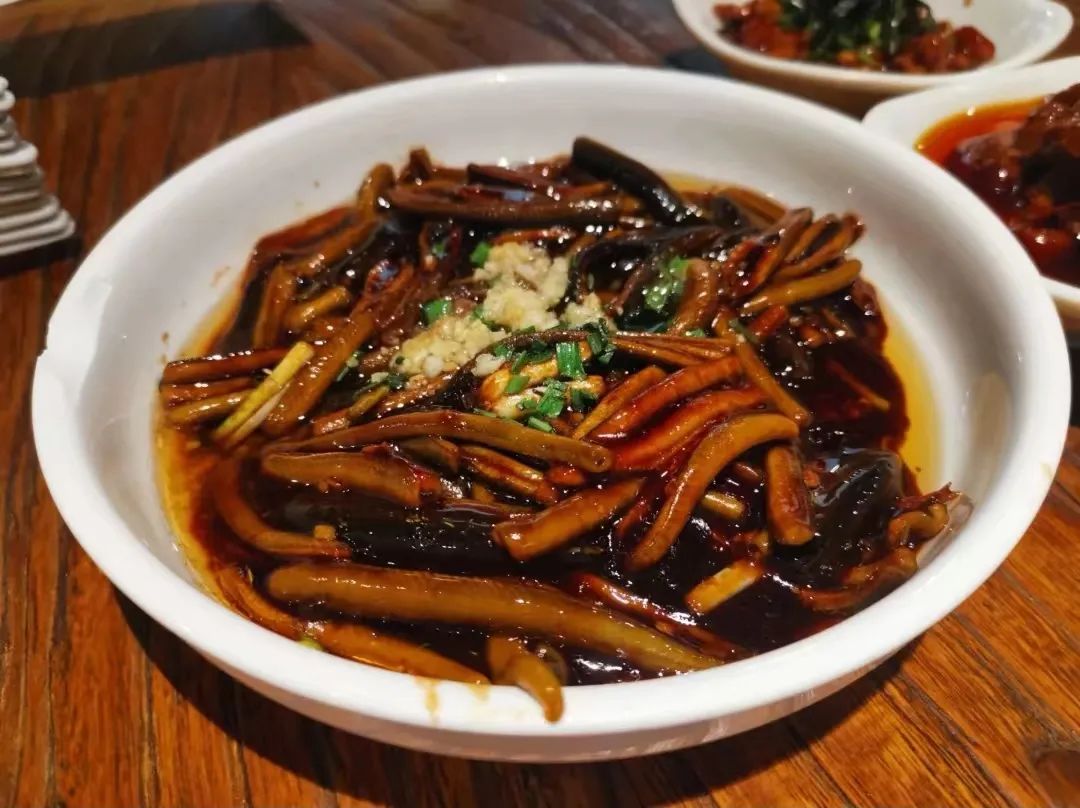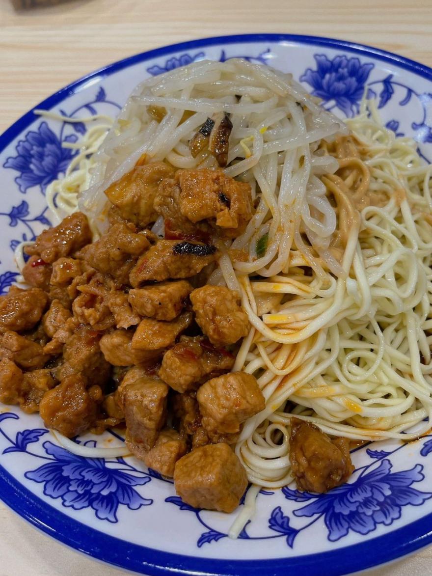 面条、酱汁是甜口冷面的标准品格。君东记的本帮小炒深得人心,重头戏自然在浇头。