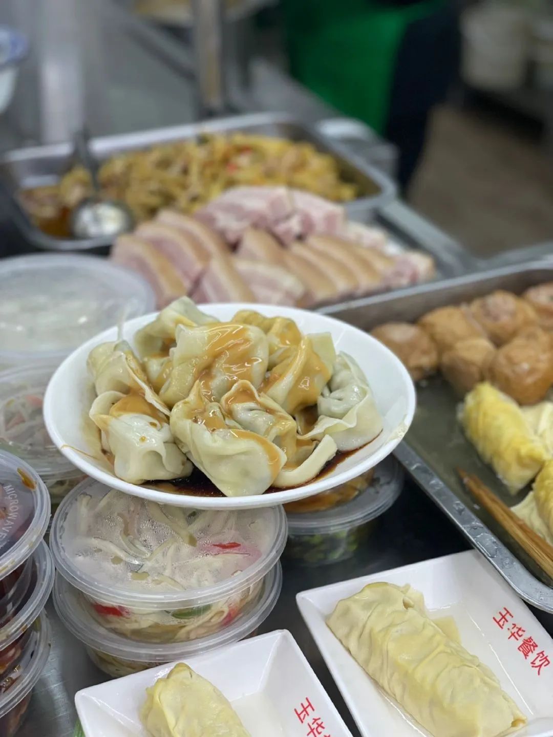 万寿斋毋庸置疑的头牌是小笼馒头。搭配小笼的,冬天大馄饨、素交面,夏天就是冷面、冷馄饨。
