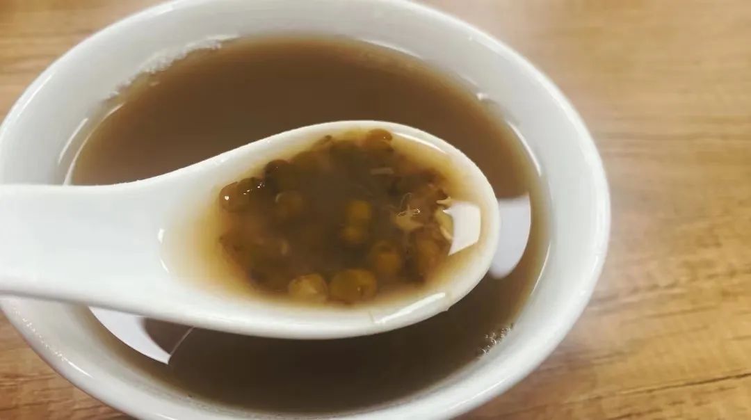 三丝浇最合这清味,茭白丝甜脆,青椒丝增添风味,瘦肉丝匀称丰腴,越嚼香味越明亮,但有时浇头师傅大意——油给多了,便有些起腻。这时,冰冰凉凉的冰镇绿豆汤妙处尽显。